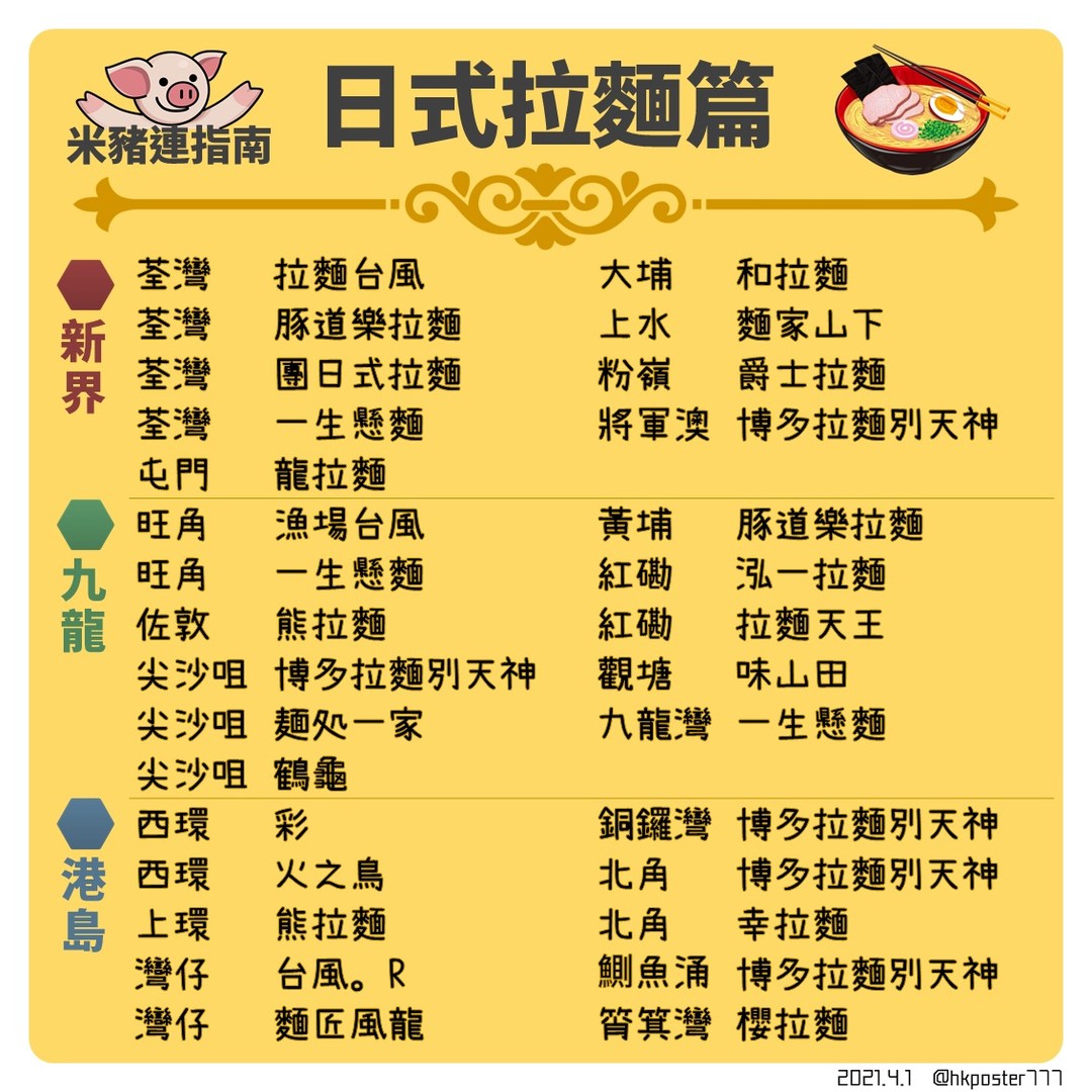 777文宣傳播稿件大合集on Twitter 米豬連指南 日式拉麵篇 2021 4 1 更新 多謝大家補充遺漏嘅黃店 拉麵 黃店 黃色經濟圈 懲罰師 金魔法