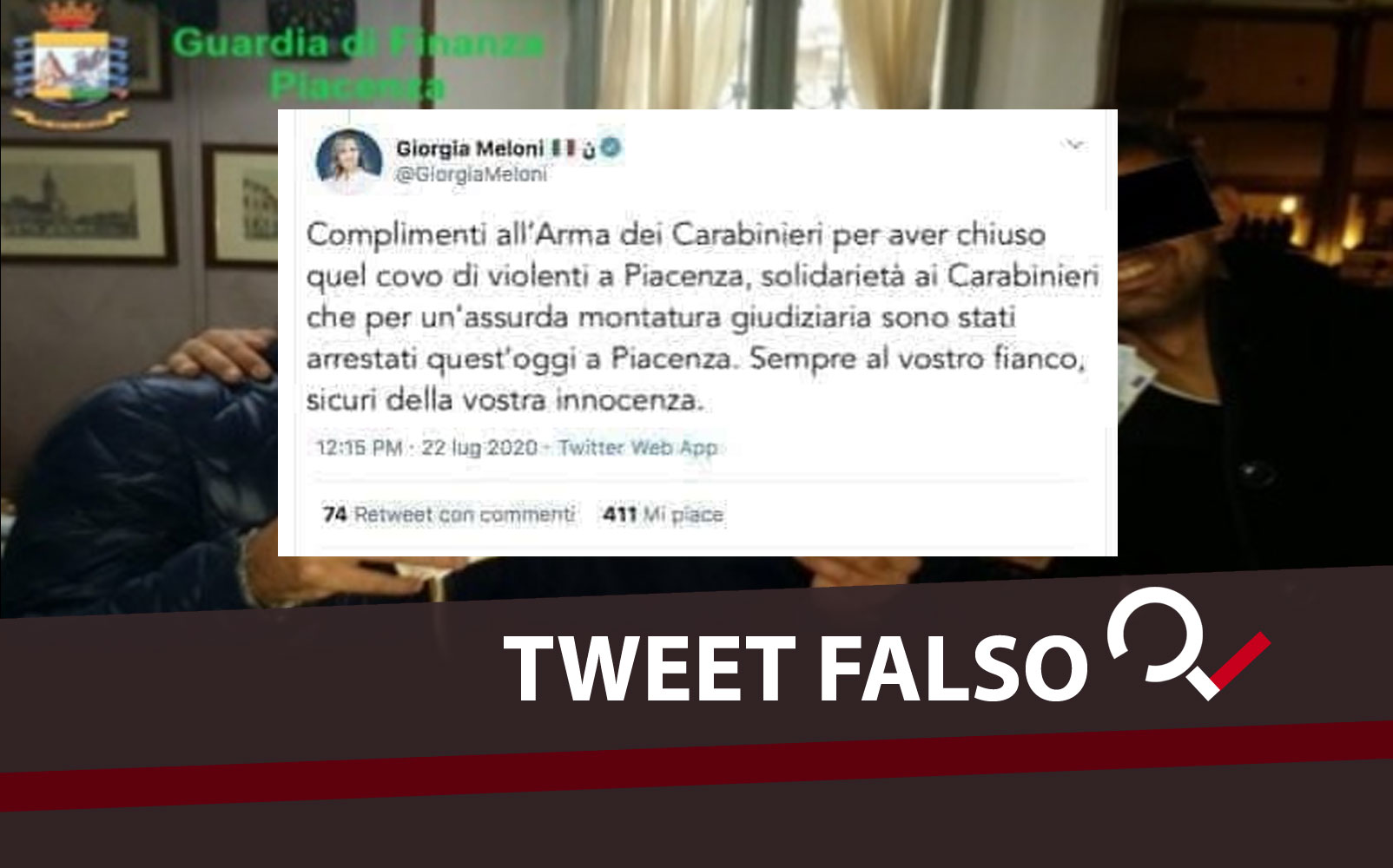 Il Fotomontaggio Del Tweet Di Giorgia Meloni Sui Carabinieri Arrestati A Piacenza Open